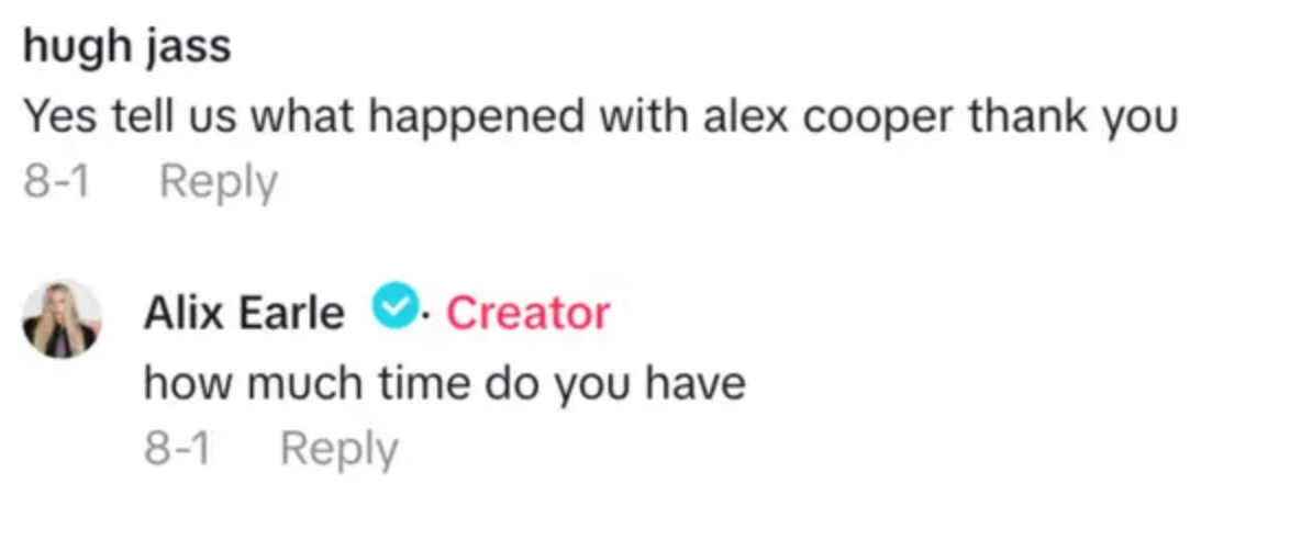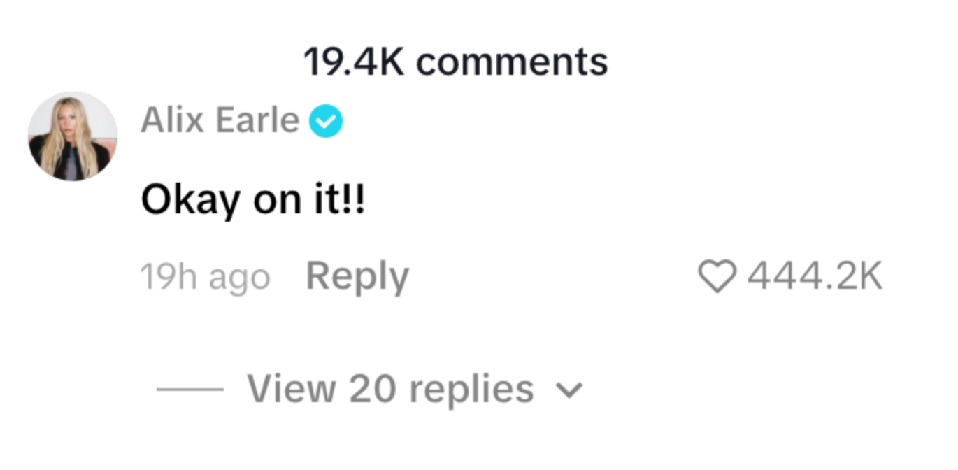 Cooper tagged Earle directly in the caption of her video, which has garnered over 12 million likes on TikTok in under 24 hours.