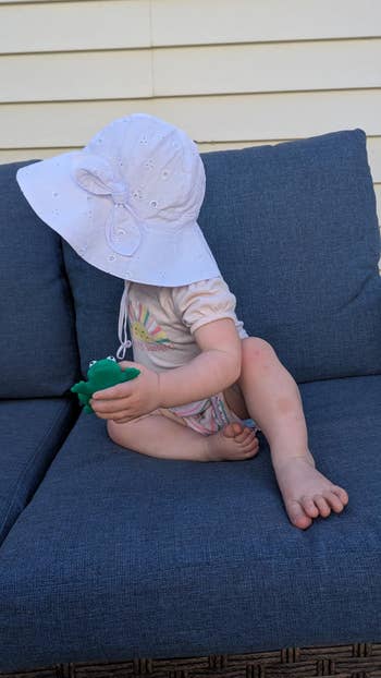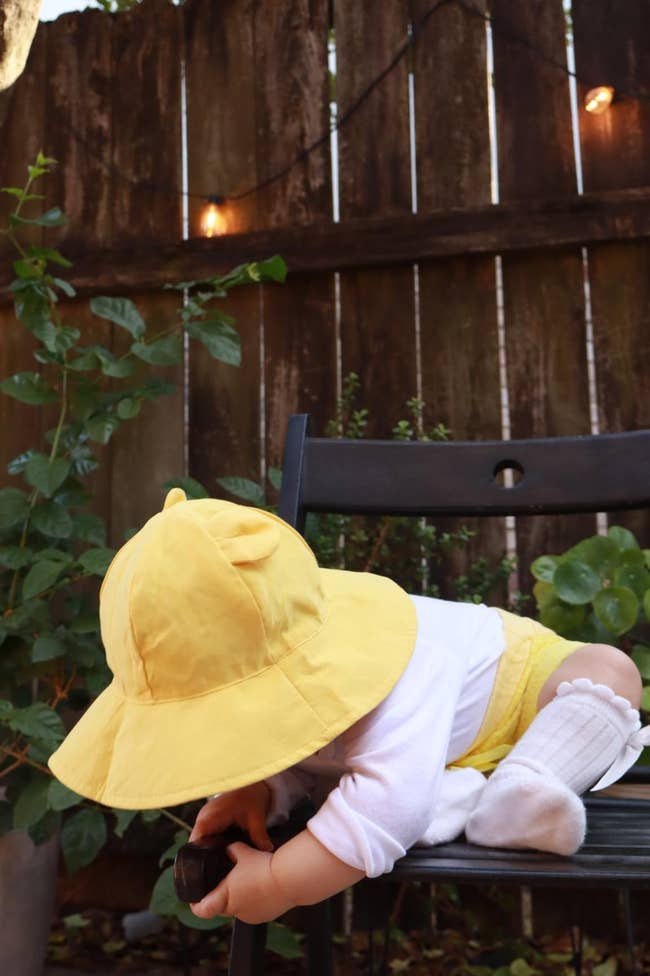 We hope you love our recommendations! While every product is independently chosen by our editors, BuzzFeed and our publishing partners may collect a share of sales or other compensation from the links on this page. You can read more about how our affiliate partnerships work in our Editorial Standards & Ethics Guide. “My 4-month-old loves it and leaves it on, so it must be comfortable.” — a very pleased parent Hello, fellow wranglers of tiny humans! I'm Heather, BuzzFeed editor and mom of two kiddos under the age of 4. I've been doing this "shopping for baby hats that'll protect my kid from the sun" game for a handful of years now, so I'm here to do the heavy lifting for you (and lots of other parenting problem-solving areas!) From a tried-and-true Carhartt baseball hat and a splurge-worthy safari-styled option from Patagonia to an adorable wide-brim sun hat from RuffleButts, you're sure to find the perfect thing to spare their noggin while they have a blast playing outside all summer. You can't go wrong with a tried-and-true classic like Carhartt! My son (pictured above, left) has had one since he was a baby and he (as of this writing) is 4 now! We've continued to replace them as he's outgrown them — they're a staple in his wardrobe! They protect his head and eyes from the sun, and he's happy to keep it on his head. In the fall and winter, he wears a Carhartt beanie, so his head is pretty much covered by this brand at all times — literally. Need I say more? Promising review: "Great comfort and value for money! The fit is perfect for my child, and the material's softness makes it comfortable to wear all day. It stays in place without being too tight, and the quality feels durable. Definitely a great buy!" —Nakia Get it from Amazon for $11.99+ (available in infant and youth sizing and five styles). This brilliant little sun hat (with built-in UPF 50+ protection) has extra coverage around the back to shield your baby's tiny ears and precious neck from the harsh sun. It also has an elastic band that adjusts the hat as their head grows, so they can wear it for years to come (something parents, like myself, love to hear!). The chin strap also makes it harder for them to pull it off, another big parenting win, but if they *do* manage to toss it (and lose it), at least the price is so good you won't feel too bad about having to order another one! Promising review: "Loved this hat! Definitely what I was looking for. It’s very soft, fits perfectly, and doesn’t make her head sweat! I recommend you mommas buy this for your baby!!" —Gabby Baeza Get it from Amazon for $12.59+ (available in sizes 0–24M and 2T–4T, in seven colors). RuffleButts is a small business! My daughter was gifted one of these hats (and very cute swimsuits) when she was born, and it was absolutely darling. However, in addition to being adorable, it really did a great job of protecting her head from the sun while hanging in our yard. It has built-in UPF 50+ and is made from a very soft fabric that rolls easily for packing. It also has adjustable tie straps to keep it securely on your little one's precious little head. Not to mention it comes in a bunch of fun colors! Promising review: "This hat is just adorable. It seems really comfortable because my daughter actually likes to wear it. It definitely helps to keep the sun out of her eyes and off her neck. The string to keep it tied doesn't bother her at all. I also love that it's swimsuit material because she can wear it with her swimsuit." —Grant Aucoin Get it from Amazon for $19.99 (available in sizes 0–24M, 2T–5T, 6Y–10Y, and 22 colors). This hat is so cute! It comes from a small business, Zelda and Matilda, and can float! It also has UPF 50+ protection and is made from a lightweight, machine-washable, stain-resistant material. It also has an adjustable drawcord for the perfect fit *and* a soft chin strap (with a safety release!!!) to hopefully prevent this lovely hat from being lost at sea. Promising review: "This adorable and comfy hat has given us a lot of use in the unforgiving Florida sun. My kid has been wearing it since she was 6 months old, and she is now 21 months old. There is plenty of adjustment left to continue wearing; however, the vibrant tie-dye pattern has definitely faded, so I plan to replace it soon. We get compliments on this hat everywhere we go!" —Bella Goth Get it from Amazon for $16.99 (available in sizes 0–24M and 2T–12Y, and in 7 styles). Green Sprouts is a small business! Can you believe this baby sun hat has over 3K 5-star reviews?! And for good reason! It's affordable, adjustable to grow with your kiddo, has a breathable liner to keep them cool and comfortable, and is machine-washable. It has a full-coverage flap to block their sensitive skin from UV rays while they play in the sun and sand *and* can be folded up easily and stashed in your diaper bag. Promising review: "Best summer hat I have used for a baby! My 4-month-old loves it and leaves it on, so it must be comfortable. It's a soft, breathable material, very lightweight, and perfect for summer. Good for the pool; it dries quickly and well. Love that it keeps the sun out of her eyes and off her neck. The adjustable strap ensures a perfect fit every time. Would highly recommend!" —Jaime Get it from Amazon for $12.99+ (available in sizes 0–18M, 2T–4T and four colors). Funky Junque is a small business! This beauty has a basketweave designed for air circulation and an opening for your little one's signature ponytail — no need to wrangle them to sit still *again* to try and tame their wild mane after splashing in ocean waves. BuzzFeed Home and Garden Editor Sally Elshorafa has this hat for her kiddo! She said, "My daughter's hair is in a ponytail or pigtails every single day, so wearing traditional hats has been challenging. When I found out about these ponytail hats, I jumped at the opportunity, and I am so relieved that they fit well and that my daughter