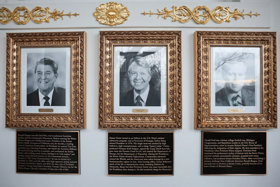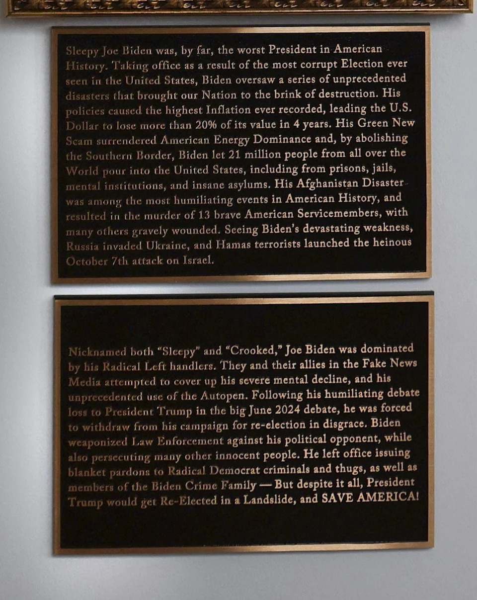Trump has a long-established penchant for self-aggrandizement, but he has been far more indulgent of it in his second term, including adorning a banner with his image on the facade of the U.S. Justice Department headquarters in Washington, DC; having his signature added to U.S. paper currency starting with the $100 bill; and renaming the John F. Kennedy Center for the Performing Arts in Washington the "Trump-Kennedy Center."