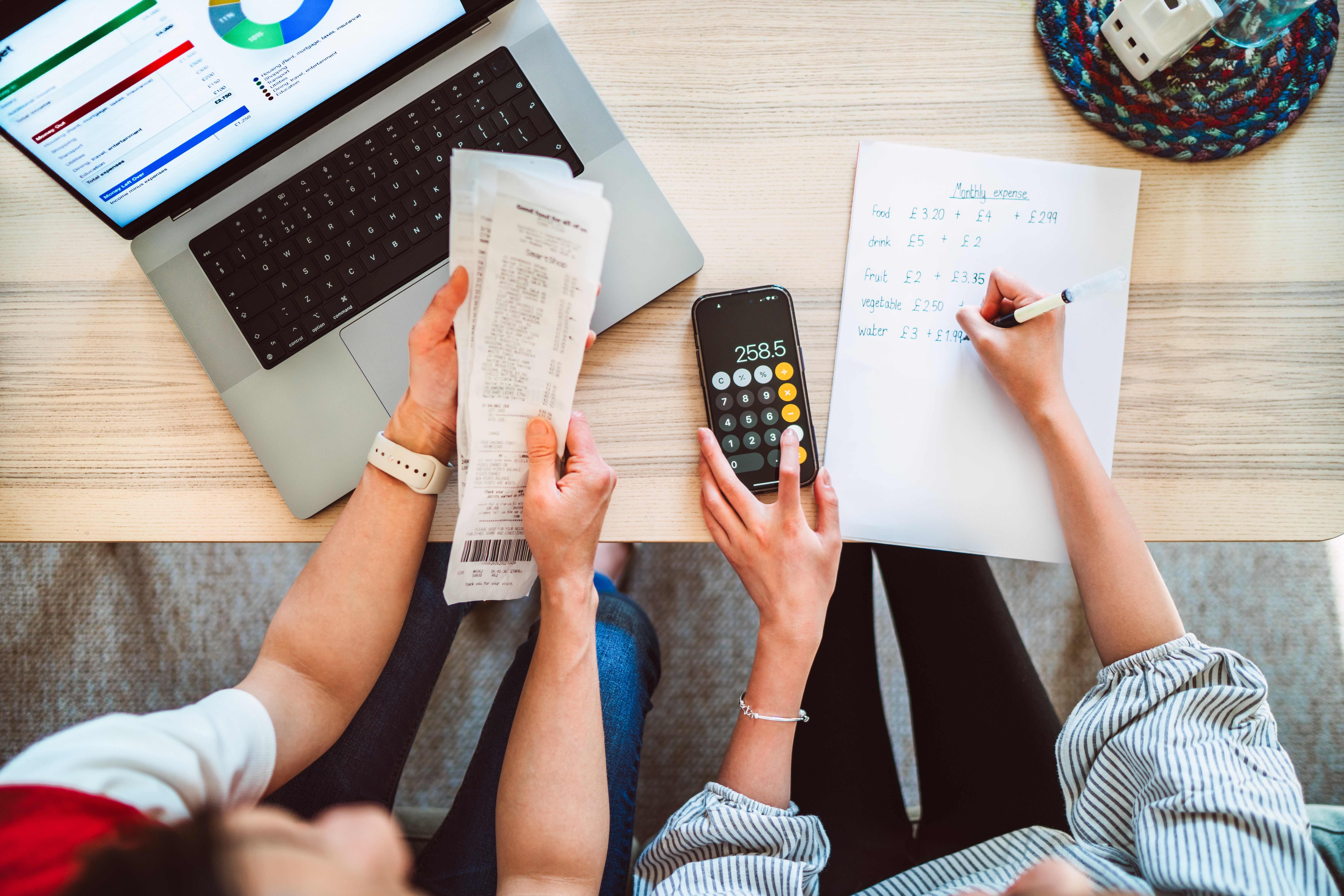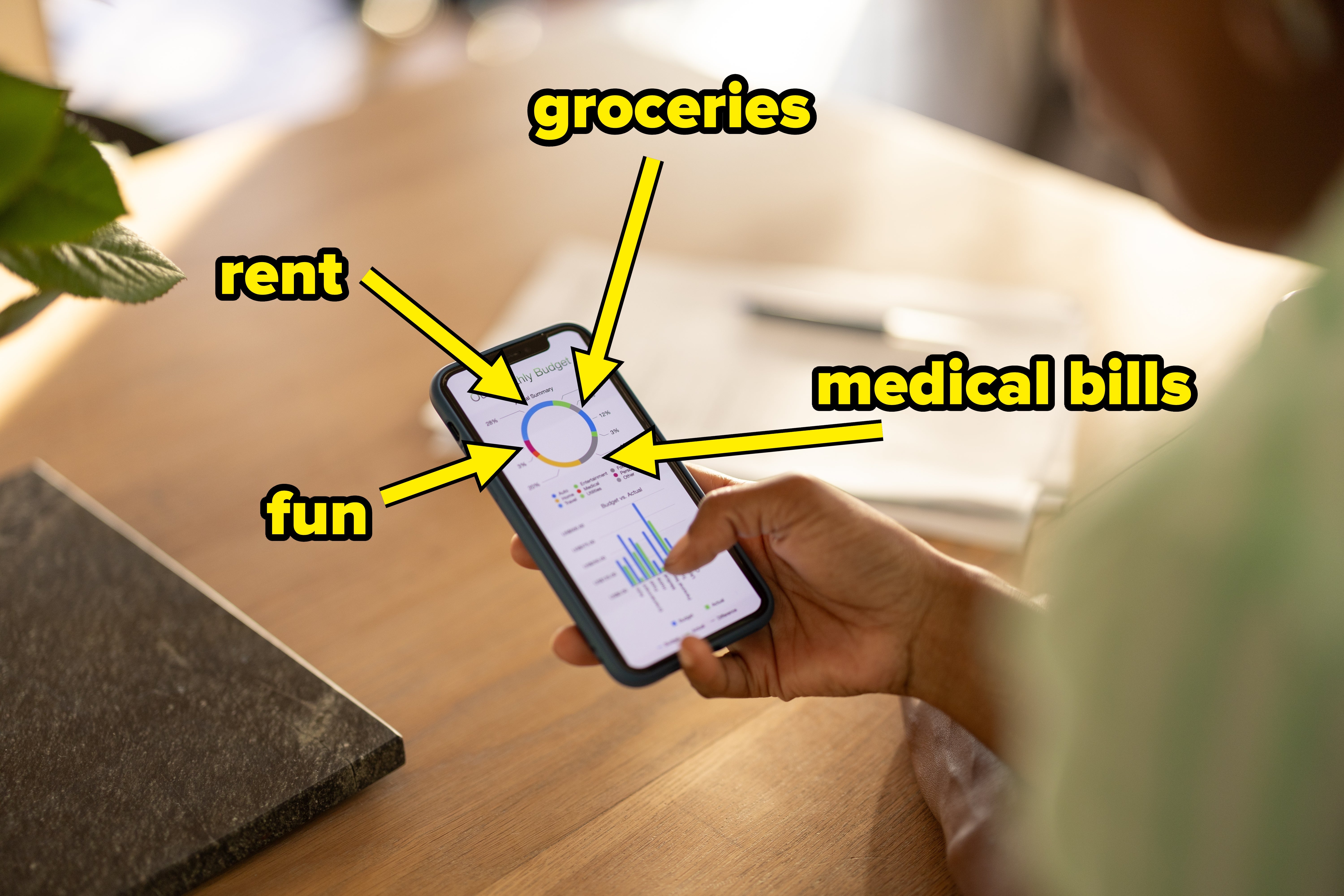 This method takes a bit of planning to get started. You'll need to tally up your average monthly income and average out what you've spent on your regular expenses over the last few months. If your bank account has an app, you can probably see your spending by category at a glance there.