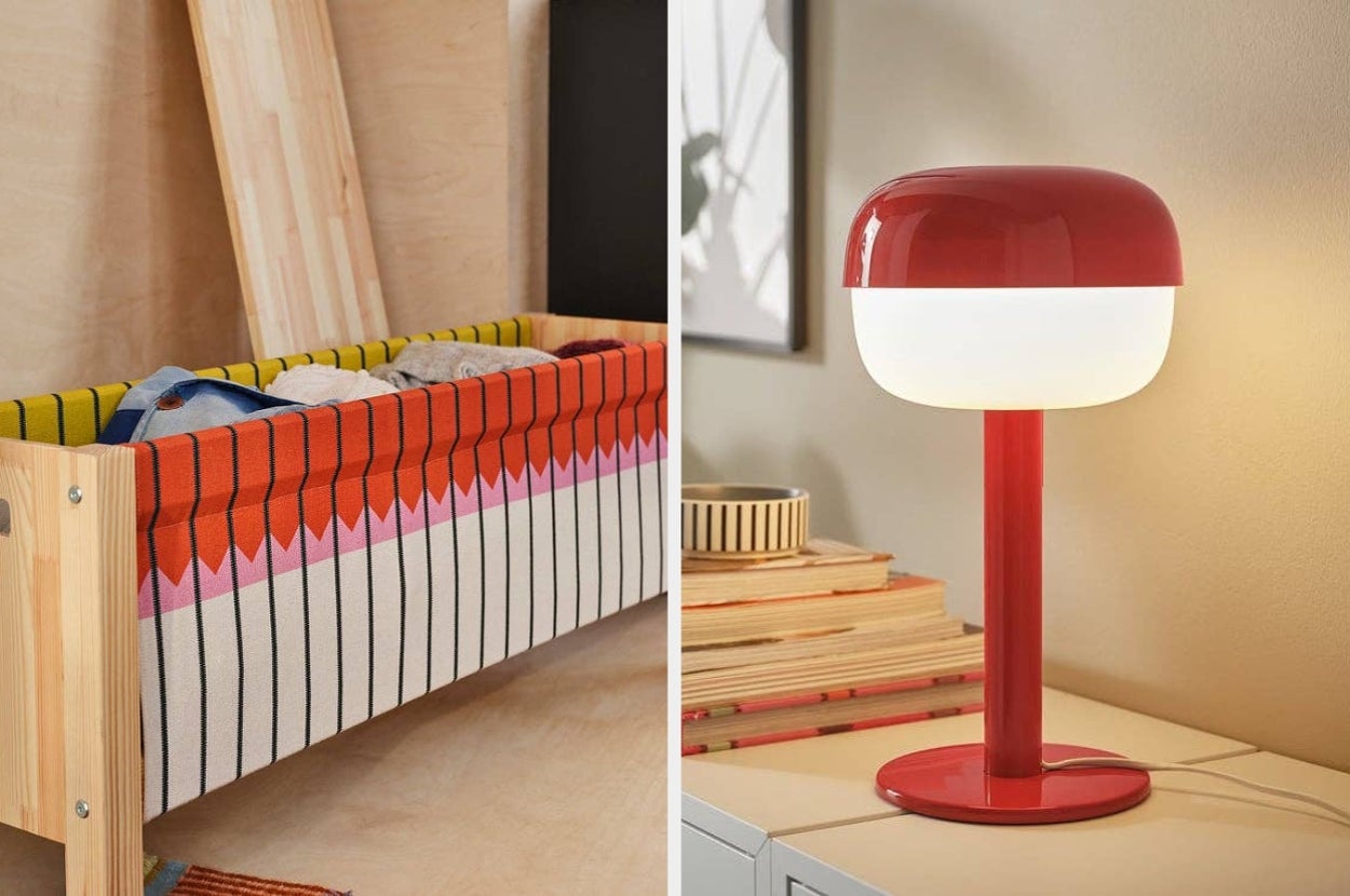 If you've been lucky enough to walk the enchanted aisles of an Ikea store and snack on their iconic Swedish meatballs in person, you likely won't need any convincing to shop this post. However, if you haven't, I'll let the adorable giraffe-shaped lamp, the practical storage shelf (with a variety of colorful tubs to choose from), the collapsible drop-leaf table, the *very* affordable 18-piece dinnerware set, and other fantastic Ikea finds convince you.