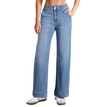 Promising review: "I really like these wide-leg jeans. They have a bit of stretch to them. I like the high waist look as well. These are cute and pair with just about anything." —AC