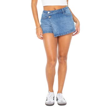 Promising review: "Love, super cute. I've been wanting a jean skirt, but I saw this and figured it would be more comfortable since they're shorts as well for being on the go in the summertime. I got the XL, and it's a little big but feels more comfortable... I could've maybe gone with an L, but oh well, it still works!" —Lourdes