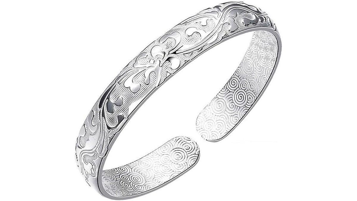 This sterling silver cuff bracelet adjusts with a quick squeeze. A floral design gives it more visual appeal than typical bangles but keeps it neutral enough to stack with other pieces. At 29% off, you can get one for just $10.