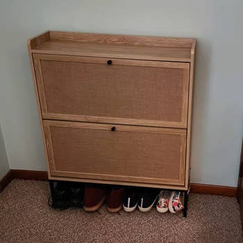 Promising review: "Perfect! Arrived within few days, fairly simple to put together once we got going. Most importantly it has made our front area much more organized, no more shoes everywhere. We have the option to place boards in so that it adjust to bigger shoes if needed. Only downside is I wish I would have purchased it sooner!" —Melissa