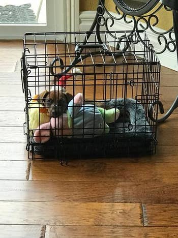 We hope you love our recommendations! While every product is independently chosen by our editors, BuzzFeed and our publishing partners may collect a share of sales or other compensation from the links on this page. You can read more about how our affiliate partnerships work in our Editorial Standards & Ethics Guide. Raising a puppy is basically like living with a tiny, adorable roommate who doesn’t pay rent and occasionally bites your ankles, so you’re going to need all the help you can get. Promising review: "My 6-week-old lab puppy absolutely loves his puppy. I put the collar that was on him when I got him on the puppy, and he snuggles it all night in his crate without a sound." —Bryan Price: $39.95+ (originally $49.99+; available in five colors) Promising review: "This is an excellent gate for separating our puppy from the rest of the house while he potty trains. It is strong enough to withstand a 40ish-pound Labrador who stands to greet everyone entering the house." —Mary Price: $39.99 (available in three colors) Promising review: "I have a large-breed puppy who was very bitey during teething. This product is large enough for a large breed puppy to reduce the risk of choking or swallowing. It can also be frozen for added soothing. It survived for more than 4 months through the entire teething period, while the other dental chews all broke at some point. The ring also helps puppies carry it to their favorite spot." —Ziqi Price: $8.96+ (originally $8.99+; available in two sizes and colors) Promising reviews: "At first, Willow wasn't quite sure about these freeze-dried beef liver treats. The texture gave her a moment of 'paws' (pun intended). But once she took that first crunchy bite, it was game over — she's absolutely hooked! Now, these treats are her go-to favorite. She'll sit, stay, and maybe even do a backflip if it means getting one. The 14-ounce tub is the perfect size to keep her tail wagging without running out too soon. If your pup needs a high-value treat to bring out their inner superstar, these are a must-try! Willow gives them two paws up!" —Kathy "Our 5.5-month-old pup loves the freeze-dried treats. I usually cut the larger ones since use for training. So lasts even longer!" —Heidi Promising review: "The Midwest line of dog kennels is so affordable that you may find yourself buying a few of them for your dogs! This one folds and unfolds within minutes and is extremely sturdy. We bought three Midwest crates so far for our mini dachshund puppy, Wolfgang, who quickly outgrew his first one (18 inches). Now he has been upgraded to two other Midwest 'condos' which fit his growing body comfortably. All three kennels have arrived the NEXT DAY after ordering, with FREE SHIPPING ($49 purchase), which is definitely a plus! Tip: If you have a puppy, pay attention to the sizing chart and don’t just eyeball his/her size (my mistake)... puppies grow bigger almost overnight! What’s nice about these kennels is that they come with a panel/separator so you can choose the correct one based on your dog’s anticipated full-grown size, but confine the area as the puppy grows." —SamIam4ever Price: $25.99+ (originally $35.99+; available in eight sizes) Promising review: "My puppy loves this Pupsicle. She never got into the leading competitor's treat-dispensing ball — it was too awkward for her to carry and hard to get all of the treat out of the ball, which is not actually shaped like a typical ball, but more like a beehive. This pupsicle has a fantastic design. My puppy can easily carry it to her bed, and she happily works on it for 20 minutes — I timed it. I can do 20 minutes of yoga while she's entertained with her pupsicle. Oh, and there is no leftover mushy treat and no mess to clean up afterward, and it's made of heavy-duty rubber that she can't destroy. Even though the instructions say that it is dishwasher safe, I plan to just hand-wash it so that it doesn't warp. It was a pricey toy, but totally worth it as it seems that she will actually enjoy using it and it will last a very long time." —Elizabeth Price: $19.99+ (available in three sizes and three colors) Promising review: "This is perfect for our puppy! We have put either yogurt or peanut butter on it. It keeps her occupied for a bit and relaxes her. She absolutely loves it!" —Jody Promising review: "I recently bought this ball for my 4-month-old Pit mix, Kobe, and he absolutely loves it! He’s a chewer, and those puppy teeth are no joke, so this was the perfect toy for him to play with all day long without having fuzz or other remnants around the house! I’m so glad we bought this product, it keeps your pup busy, entertained, and happy! Who wouldn’t want that for their furry friend?!" —Alex Price: $8.50+ for a two-pack (originally $12.99+; available in three sizes) Promising review: "This pizza snuffle mat is so cute and fun! This is my pup and my first-ever snuffle mat, and I am super impressed so far! The 'crust' makes a great crinkle noise; each piece of the pizza is held on by sturdy Velcro, but is easy to remove and replace. It has lots of places to stuff and hide kibble or treats, and each piece has a squeaker! My 3-month-old, 23-pound puppy loves it! I haven't yet tried to wash it, but it looks like it will hold up well." —Jessica Promising review: "These were good prices for the quality and quantity. My puppy absolutely loves to chew on them. It has helped with her teething, as well as something to play with." —Monique Price: $26.84 (originally $50.99; includes six pieces) Promising review: "I have a 14-year-old Akita mix who devours every toy we have gotten him. He never stops tearing them apart, so most only last a day or two. In 14 years, we have bought four large Kongs, which he gets nightly. That is a record none can beat. Plus, no nylon shards in your dog's gut." —Kathy Price: $7.96+ (originally $8.99+; available in six sizes) Promising review: "With three dogs running around, 