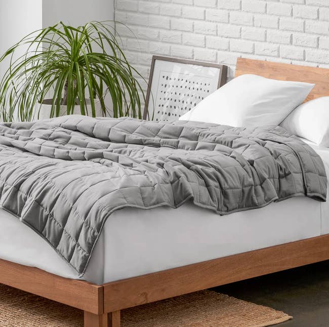 Promising review: "Having tried several types of weighted blankets, this is by far my favorite. Its breathable quality allows for comfortable temperature without getting too hot. The small squares prevent the weight from shifting, bunching in areas, and keep the weight evenly distributed." —Rebecca