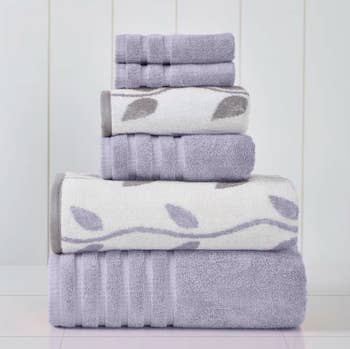 The set comes with two bath towels, two hand towels, and two washcloths.