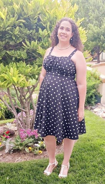 Promising review: "I got this to wear for my brother's wedding. I have an incredibly short waist and long legs, and a postpartum belly. This dress was incredible on me, it's made with a very nice cotton blend, and I was very impressed with the way it was made for the midline price. I am planning to purchase several more to wear, as it checks off all the boxes for me, romantic, classic, and well-made!" —Perrine