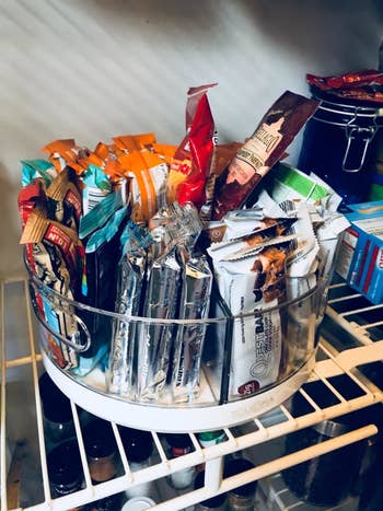 Promising review: "These are a dream come true. So many of these other lazy Susans are just lazy. This one takes it up ten notches. It's the valedictorian of Susans. This one spins with ease, is so simple to clean, looks great, AND has removable sections. WHAT. Those other ones just don't have that forward thinking. I've bought these for home — my spices, my snacks, my makeup. I even bought these for my work and blew people's mind. They had no idea that we could save so much space in our cabinets. They loved them." —Jg