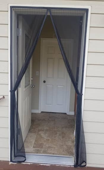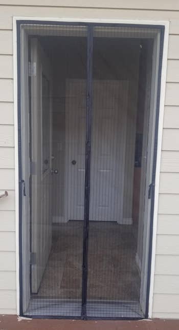 Promising review: "We got this screen so our dog can go in and out freely without letting the bugs in. At first he wasn't quite sure about going through it; in fact he scratched at it signaling us to open it for him. But after a few training treats he figured it out. Installation was so easy! The Velcro, fabric, and mesh all seem very good quality. I'm also happy that we can take down the screen in the winter and store away easily, then just reattach it in the spring. Very happy with my purchase!" —Crystal K
