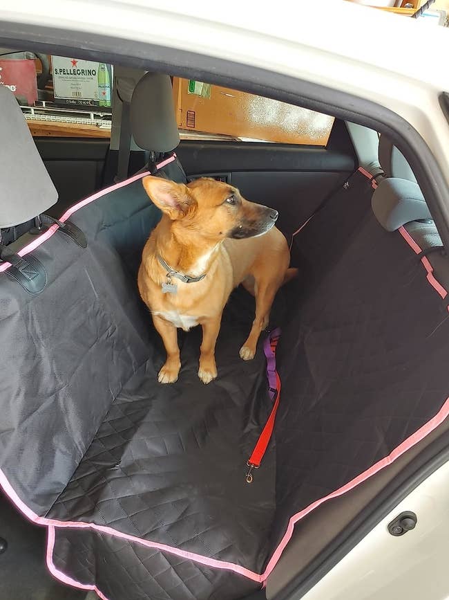 Promising review: "The seat cover fit my small SUV perfectly and stayed in place, even when my dog scratched and pawed at it. I bundled up the cover after the ride and simply shook out the dog hair and dander. My car seat was left clean. The cover folded up compactly and I stored it in the back of the car. I’m very happy with my purchase." —Diane
