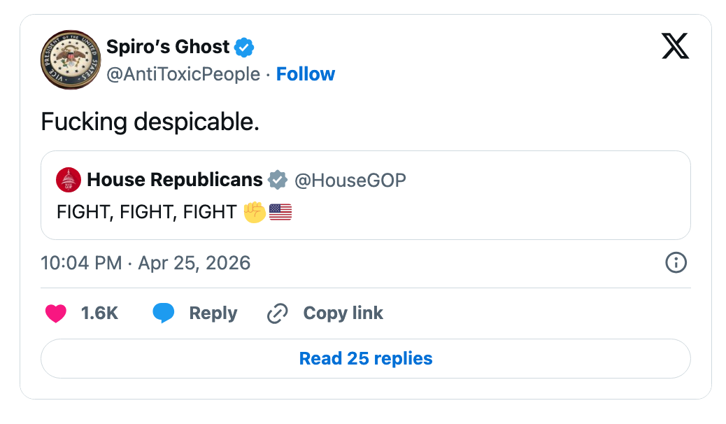 The House GOP's "Cringe" Response To The Correspondents' Dinner Shooting Is Going Viral