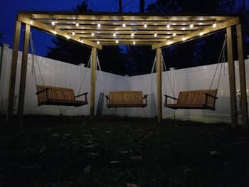 We hope you love our recommendations! While every product is independently chosen by our editors, BuzzFeed and our publishing partners may collect a share of sales or other compensation from the links on this page. You can read more about how our affiliate partnerships work in our Editorial Standards & Ethics Guide. Wouldn’t it be nice to have your own little outdoor oasis you can retreat to? Promising review: "I love these. They look great on my little patio. They are very well made and super easy to put together. They drain well and hold a fair amount of flowers and soil for the size. I found them to be sturdy and they seem pretty durable. It’s a really good value for the price, too. I highly recommend!" —Anonymous Get a set of 10 from Amazon for $19.59+ (available in two sizes and three colors). Brightech is a small biz that specializes in home lighting. Promising review: "These are amazing! They look and feel super expensive. The plastic bulb around the LED light is sturdy and doesn’t bend when pressure is applied. The cord is nice and thick with heavy-duty hangers built in. The solar panel is easy to install and operate and the lights stay on all night from a day's charge. Not too bright but not too dim either! We LOVE our lights! One strand perfectly lights my 25x12 front porch." —Steffany Get it from Amazon for $34.99+ (available in three sizes and in soft white or warm white). Each set of these lights comes with eight stems that have bulbs on the end. Promising review: "I love these little balls of moving light in our garden! Make sure you 'loosen' them up out of the box. They are very upright at first, but the wires flex, and you can arrange them to appear to float in the night. I plan on buying more to give the illusion to my whole backyard. They are not too bright, but absolutely are brighter than many of my other solar lights. So far mine have stayed lit until morning!! The wind makes them bounce and sway, just enchanting!! Buy some! They will make you happy!!" —Ruth Anderson Get a two-pack from Amazon for $13.98+ (also available in larger packs). Promising review: "I have had this pool for about two weeks now and I LOVE IT!!! Was simple to set up, I got a little electric pump and it took about 10 minutes to inflate, then about half an hour to fill with water. Pay attention to make sure you set it up on level ground or it will be lopsided. I live in South Carolina so it is already hot and humid, and I use it about every afternoon. It is probably good for two adults, maybe one adult and a couple of kids. The built-in seat and headrest are really quite comfy and relaxing. I will definitely buy this same pool again if it springs a leak and can't be fixed, if I could give it 10 stars, I would. LOVE, LOVE, LOVE it!!!" —Kathryn J. Promising review: "We love this lounge chair!!! The price was fabulous!! (And just a note... If you take care of your things — i.e. cover up the swing with a tarp and bring the cushions in when not using it — It will stay like new. Sun and rain can age anything! Easy-peasy!!) This lounge swing is so comfortable and made very well!! And it only took my hubby and me 25–30 minutes to put together. Take my word for it... you are not going to find a nicer lounge swing at this price!!" —Marash Get it from Amazon for $199.99 (available in 15 colors). These chairs are foldable so they can easily be stored when not in use. It also makes them great for camping, the beach, etc. Promising review: "I am super excited to share my feelings on these chairs! After doing a lot of research, I decided to go with these, and I am so glad I went with these! These are without exaggeration the best beach chairs I have ever lounged in. They come fully assembled, with the exception of the side drink rest, which is very easy to pop on. These fold up quite compactly and are very easy to transport. And these are so comfortable! When lounging in these chairs, I am incredibly relaxed. I look forward to lounging on the beach or in the backyard in these chairs. I have been a broken record telling everyone how wonderful these chairs are. You cannot go wrong if you go with these chairs!" —Bobby D Get a set of two from Amazon for $99.99 (available in 45 colors). Promising review: "What a cool use of space and it's a great match for our outdoor set. I store sunscreen and other items when not entertaining. There’s a reason thousands of people purchase this. It’s a functional cool piece." —Mamma 4 Get it from Amazon for $79.99 (available in two colors/styles). Promising review: "Its sturdy construction and classic design make it a standout piece for any patio. The robust cast-iron and steel frame ensure longevity, while the generous size accommodates comfortable seating. Elevate your outdoor space with this timeless and reliable garden bench." —Zhang_Shawn Get it from Amazon for $143.99 (available in seven colors/styles). The five quick-connect nozzles range from intense jet to gentle spray, so you can tackle all kinds of messes such as mildew, tar, rust, grease, mud, etc. The pressure washer also comes with two detergent tanks, a garden hose adapter, a 20-foot high-pressure hose, and a 35-foot power cord. The Total Stop System trigger will automatically shut off the pump when the trigger is not engaged, which can help save energy and prolong pump life. Promising review: "I am immensely pleased with my purchase. It has been superb so far. Installation was a breeze. Feels and looks like a quality product. Did a good job on my car. Water pressure was superb. Has different end nozzles for various jobs. I used the recommended end nozzle for washing my car, and it worked perfectly. I am certain this item would last an eternity, but only time will tell. Certainly a bang for the money spent on this pressure washer. I have absolutely zero regrets. Connectors did not leak as stated in reviews from other purchasers. Yes, it is easy to cross-thread the connectors if you don