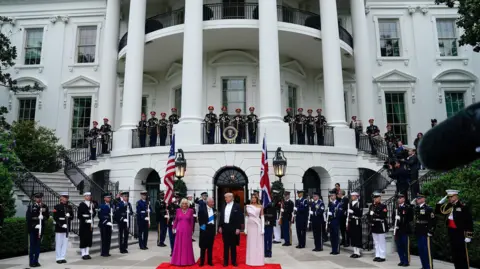 On Tuesday morning, the royals received a ceremonial welcome at the White House, where President Trump presented a military spectacle to the King and Queen, including gun salutes and bugles.