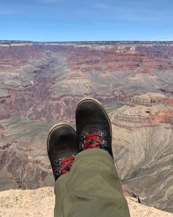 Promising review: "Awesome boots! Super stylish and amazingly comfortable. I feel like my feet are in clouds. And so warm! I pair them with my Smartwool socks, and my feet are happy! I’m a size 6 in most shoes, but generally I size up for hiking boots, and these are no different. I ordered a 6.5 and they were perfect. I ordered the brown pair with the red laces, and they are eye-catching. Received many compliments when I wear them. Great boots!" —VegasgirlClaudia
